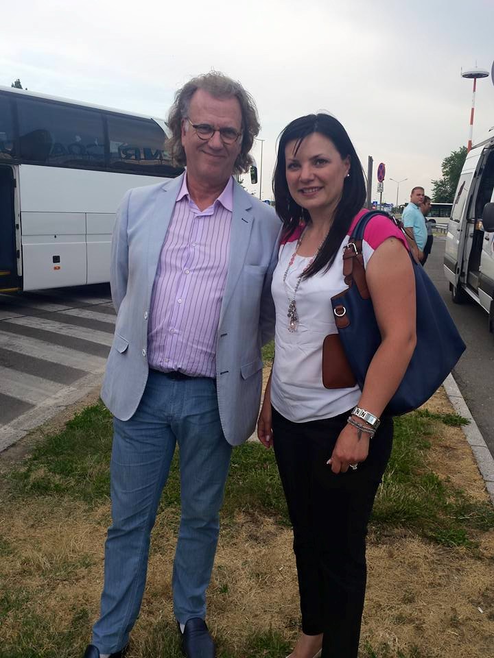 André Rieu a fost întâmpinat de o „armată” de jurnalişti pe Aeroportul Internațional Henri Coandă București. Amabil, zâmbitor, celebrul violonist olandez a răspuns întrebărilor jurnaliştilor şi a făcut fotografii alături de câţiva fani norocoşi.