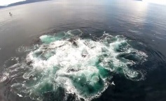 O dronă care survola Alaska a suprins imagini spectaculoase cu un grup de balene aflate la vânătoare.
